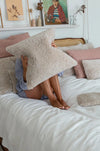 • Double sided - Beige 100% sheepskin cushion cover with a heavy flax linen reverse