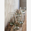 This is a fine example of the craftsmanship from Firozabad, India, a central hub for glass production. Made from partially recycled materials, it features a unique hammered texture that enhances its clear surface. It is both a practical item and a sustainable choice, emphasizing a commitment to eco-friendly practices.