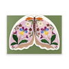A decorative moth shaped greeting card in brown, blues and cream, paired with a luxurious leaf green envelope.